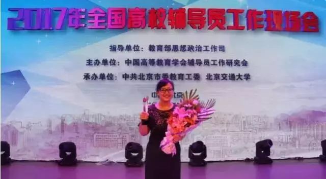她获评第九届全国高校辅导员年度人物,受邀参加在北京召开的全国高校辅导员工作现场会并获得表彰。