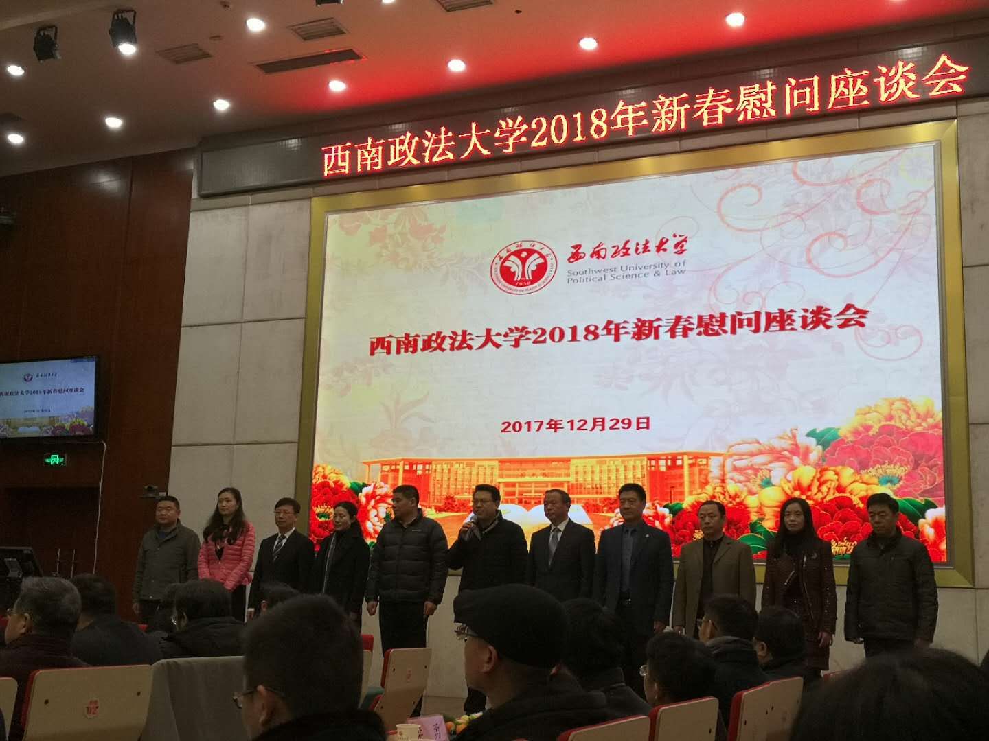 12月29日下午,在学校第八次党代会胜利闭幕,2018年元旦佳节即将到来之际,学校2018年新春慰问座谈会在毓才楼一楼学术报告厅举行。全体在家校领导、党委常委、在职高层次人才代表、在职教职员工代表、原任校级领导代表、离退休老同志代表以及各单位负责人参加了座谈会。座谈会由校长付子堂主持。